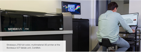 Stratasys J750 full color multimaterial 3D printer at the Bordeux IUT fab lad unit, Coh@bit